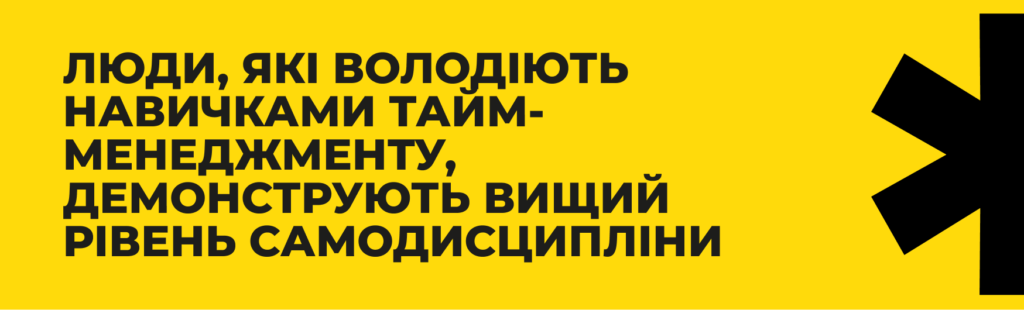 - Самодисципліна та сталі робочі звички. Заборона «ще 5 хвилин у соцмережах», сформована рутина.