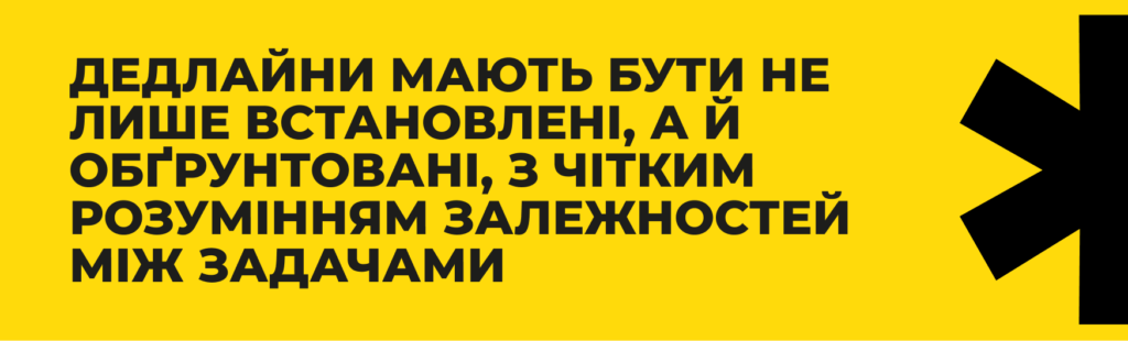 Дедлайни мають бути не лише встановлені, а й обґрунтовані, з чітким розумінням залежностей між задачами. Практика «плани на день / тиждень / спринт» допомагає структуризувати робочі навантаження. Керівники мають не просто контролювати виконання, а надавати підтримку, усуваючи перешкоди й правильно розподіляючи ресурси. Саме це є ключем до принципу «тайм-менеджмент в управлінні персоналом», коли роль лідера полягає у створенні умов для продуктивної роботи, а не в мікроменеджменті.
